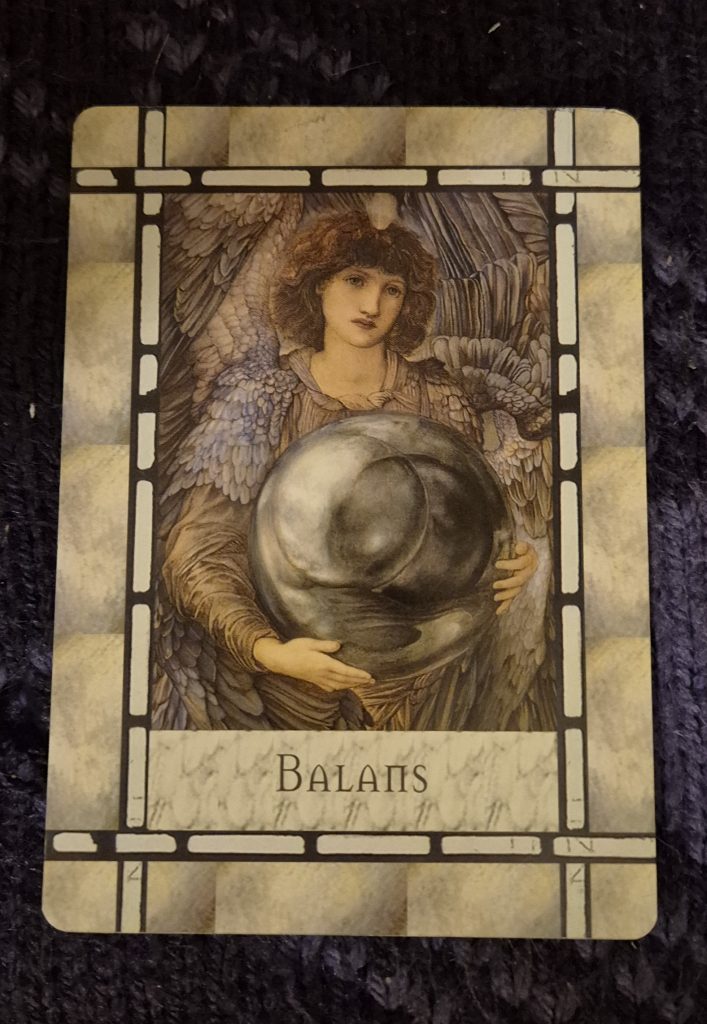 Det känns som att ängeln på kortet är lite nedstämd, ser också fundersam ut. Förmodligen för att något hos dig och/eller i livet är i behov av att balanseras upp.